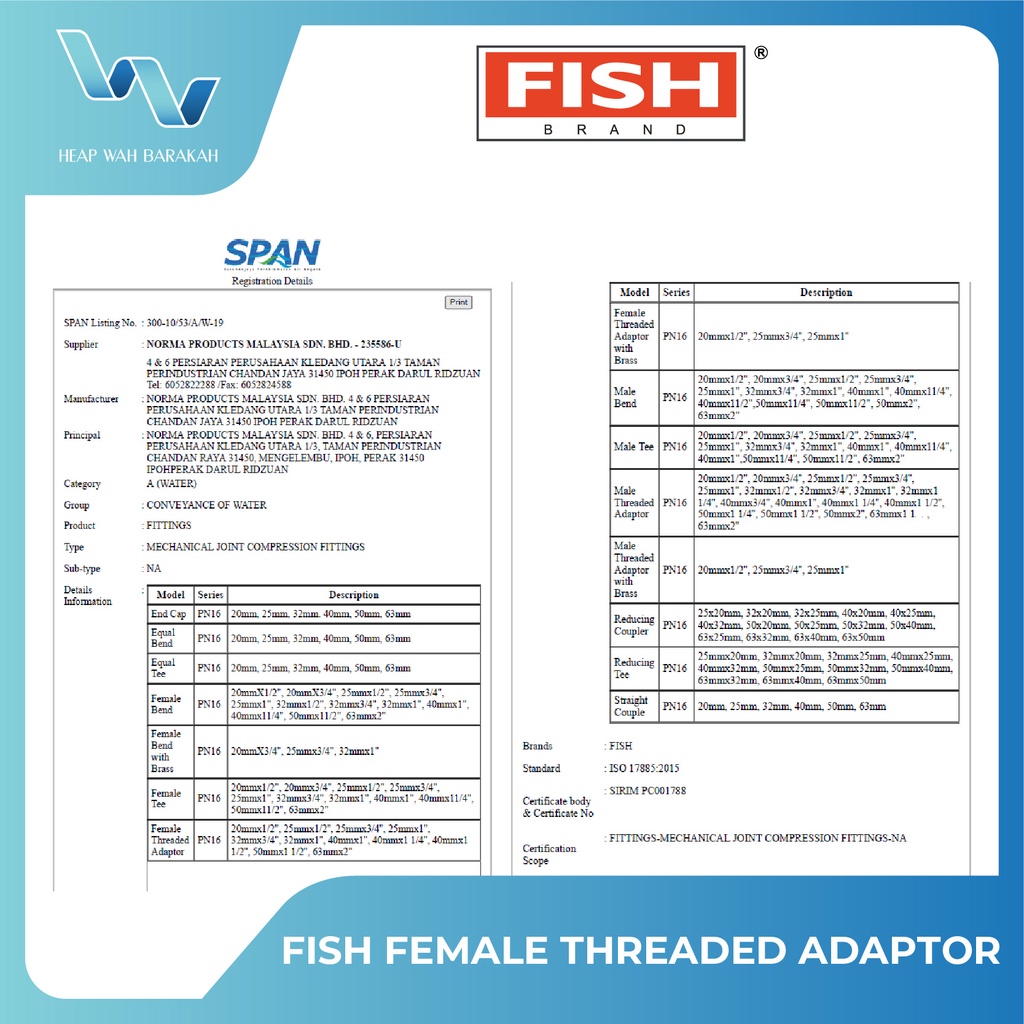 FISH POLY PT SOCKET FITTING PN16 (20MM - 40MM) POLY FITTING (SPAN CERTIFIED)