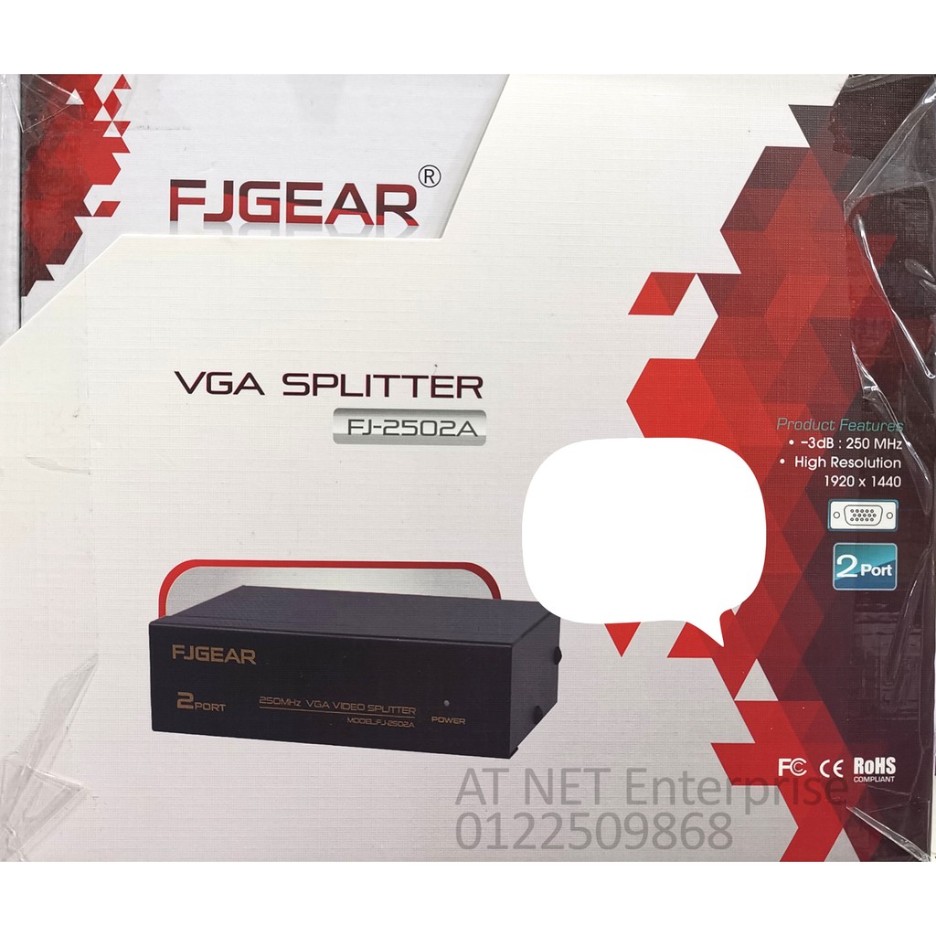 FJGEAR 2 PORT VGA SPLITTER 250MHZ METAL CASE 1920 X 1440 FJ-2502A
