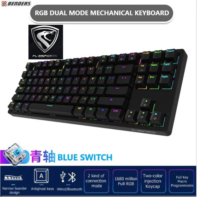 FL-ESPORTS F11 Bluetooth Dual Mode RGB Mechanical Gaming Keyboard 87 Keys RGB Wireless Type C Wired