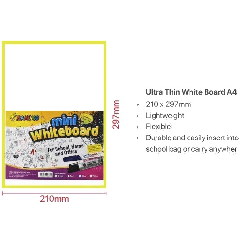 FLAMINGO MEMO MINI WHITEBOARD A4 & A3 SIZE LIGHTWEIGHT/ papan Putih nipis A4 / Papan tulis A3 ringan