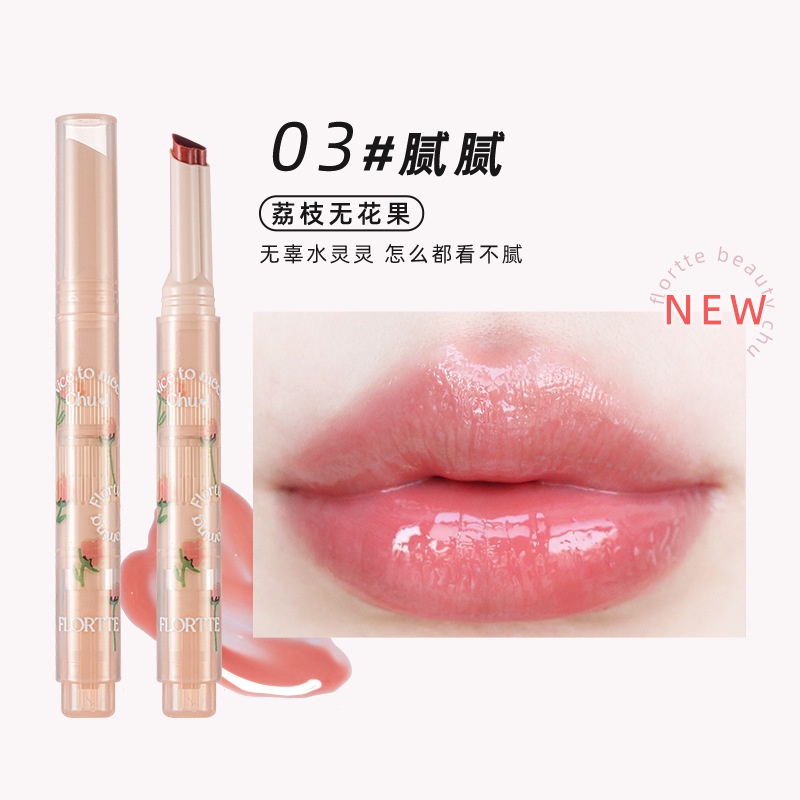 FLORTTE First Kiss Series Love Stick Lipstick Pen Mirror Surface Moisturizing Flower Falling