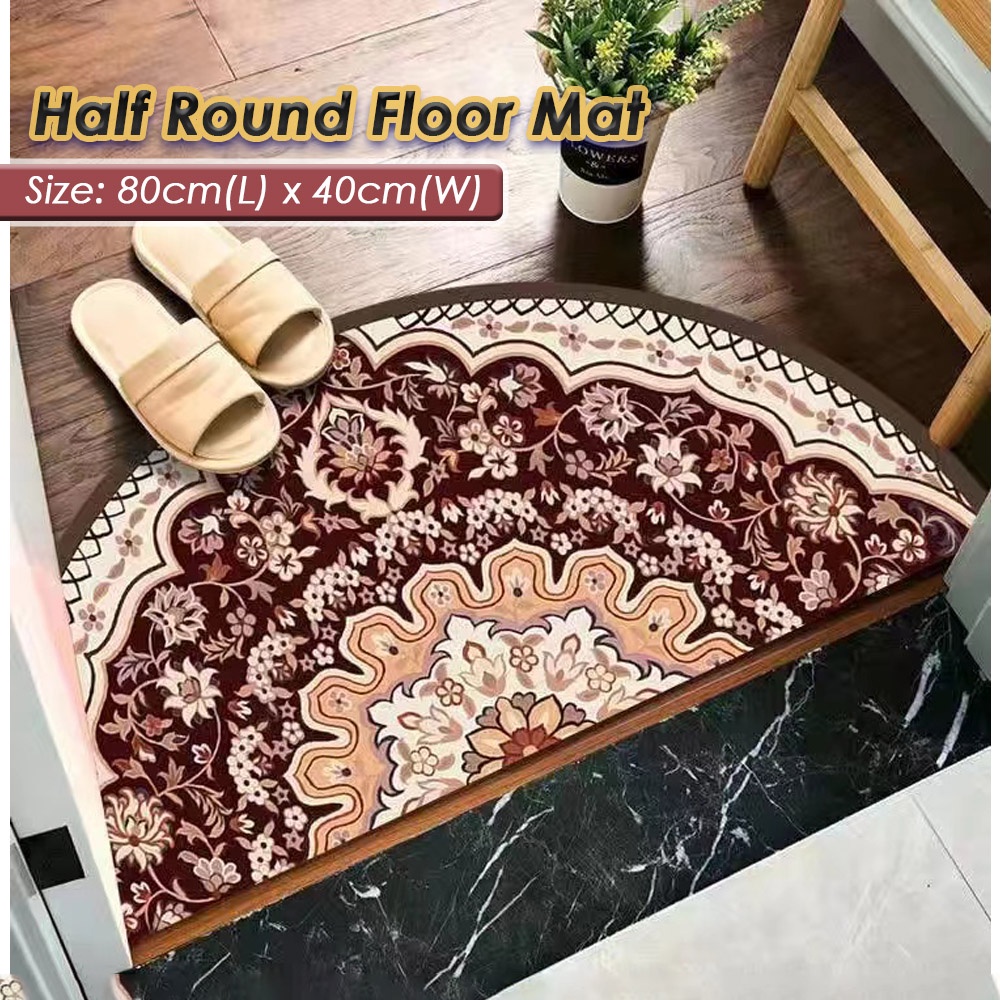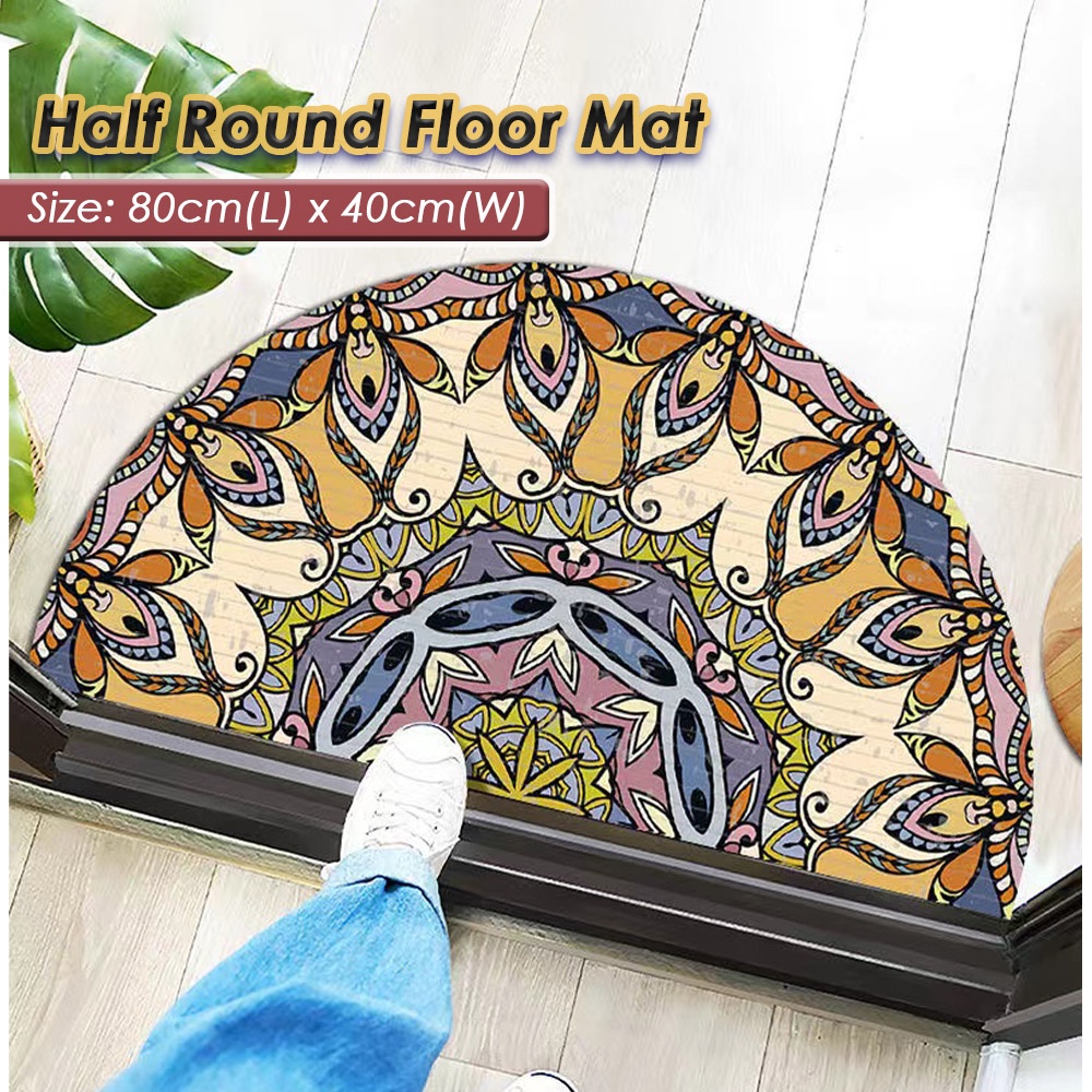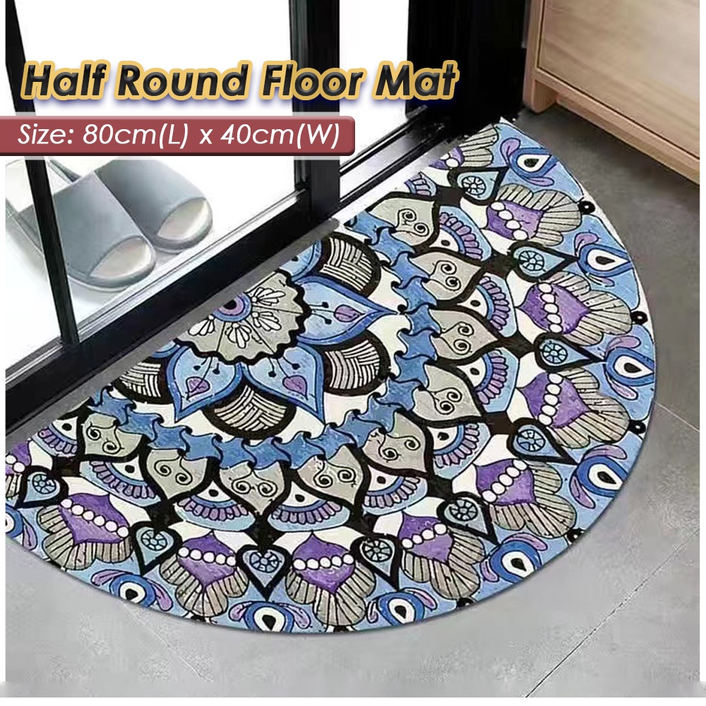 FM011 Semi Circle Half Round Floor Mat (80 x 40cm) Door Mat Rug Soft Carpet Anti Slip Dirt Barrier D Shape Semi Circle