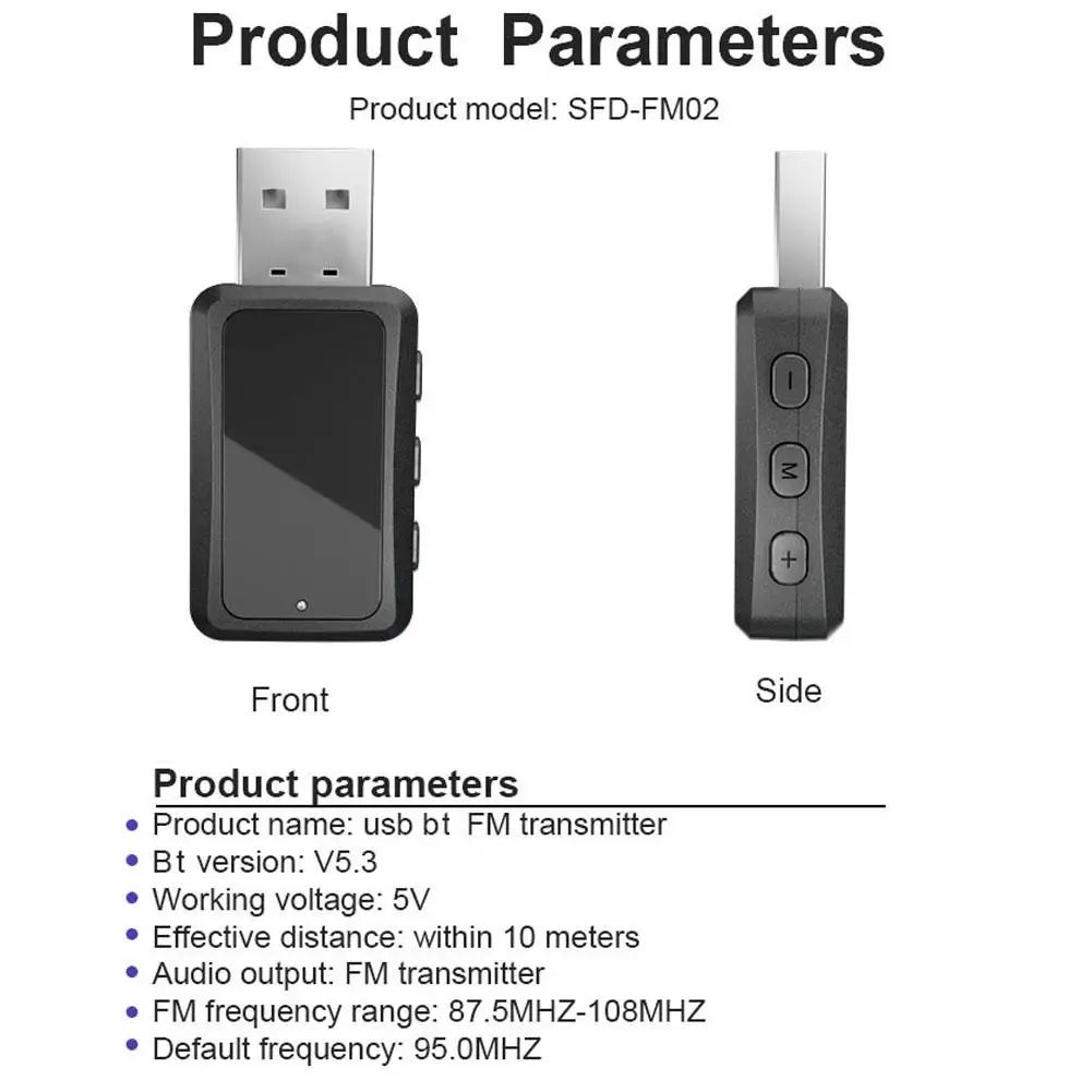 FM02 Car Bluetooth 5.3 FM Transmitter & Receiver - Hands-Free Call Mini USB Power Auto Wireless Audio Adapter