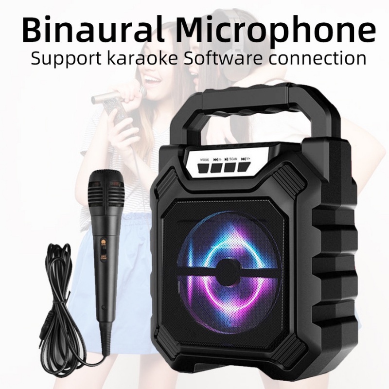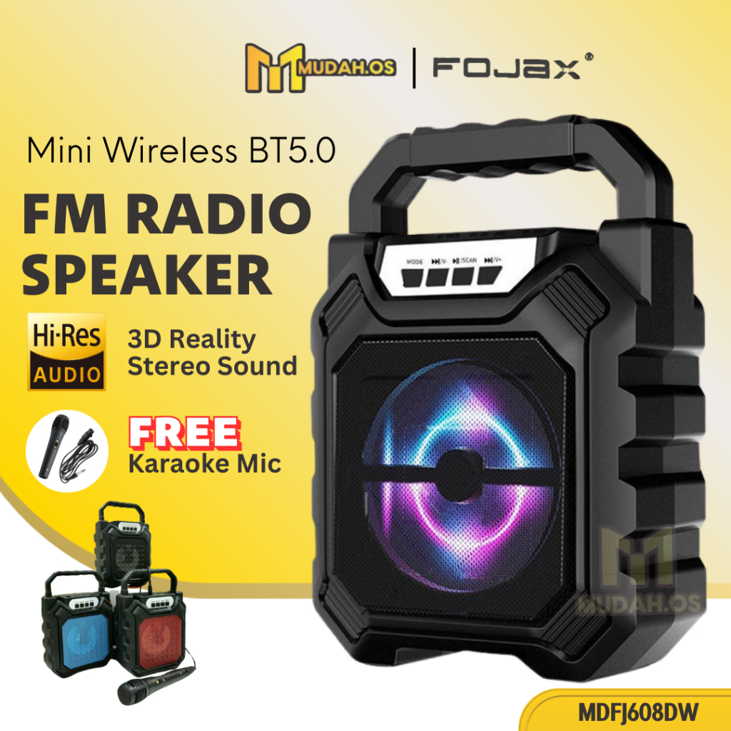 FOJAX Mini Bluetooth Speaker USB FM Mode Karaoke Portable Karoke With Mic Classroom Spiker MDFJ608DW