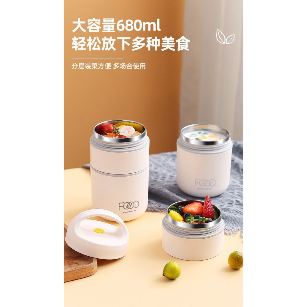 FOOD thermos Food Jar Thermos 2-Tier Vacuum Insulated Stackable Stainless Steel Thermal Lunch/Snack Box Container Sm