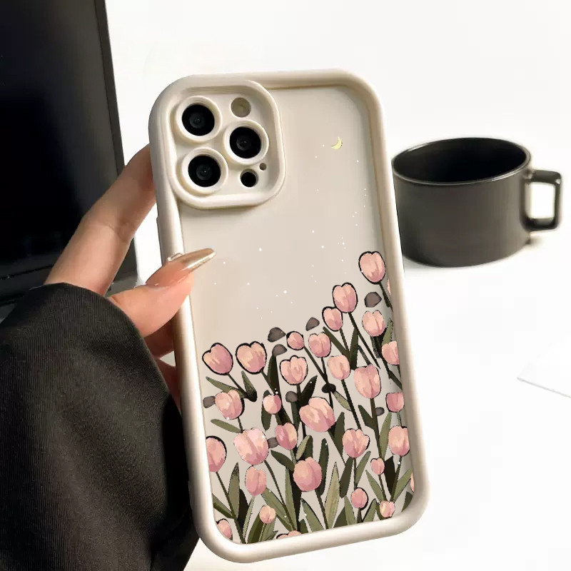FOR Redmi 9A casing 10C 12 13C 9T 9C 10 12C 13 Pink tulip Note 13pro 13 12 11 10promax Note10s 9 8 matte solid soft case