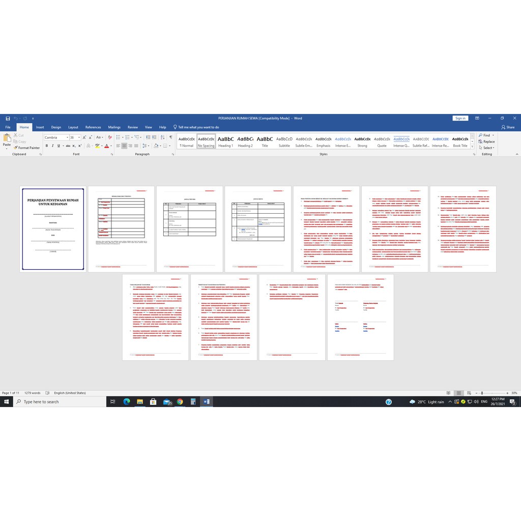 FORMAT SURAT PERJANJIAN RUMAH SEWA (MICROSOFT WORD) BOLEH EDIT