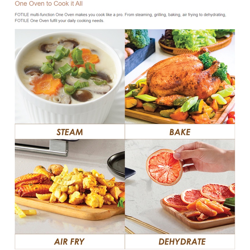 FOTILE 4 in 1 One Oven Combi Oven Air Fryer + Steamer + Baking + Dehydrator (26L) HYZK26-E1 Thermomix 小方