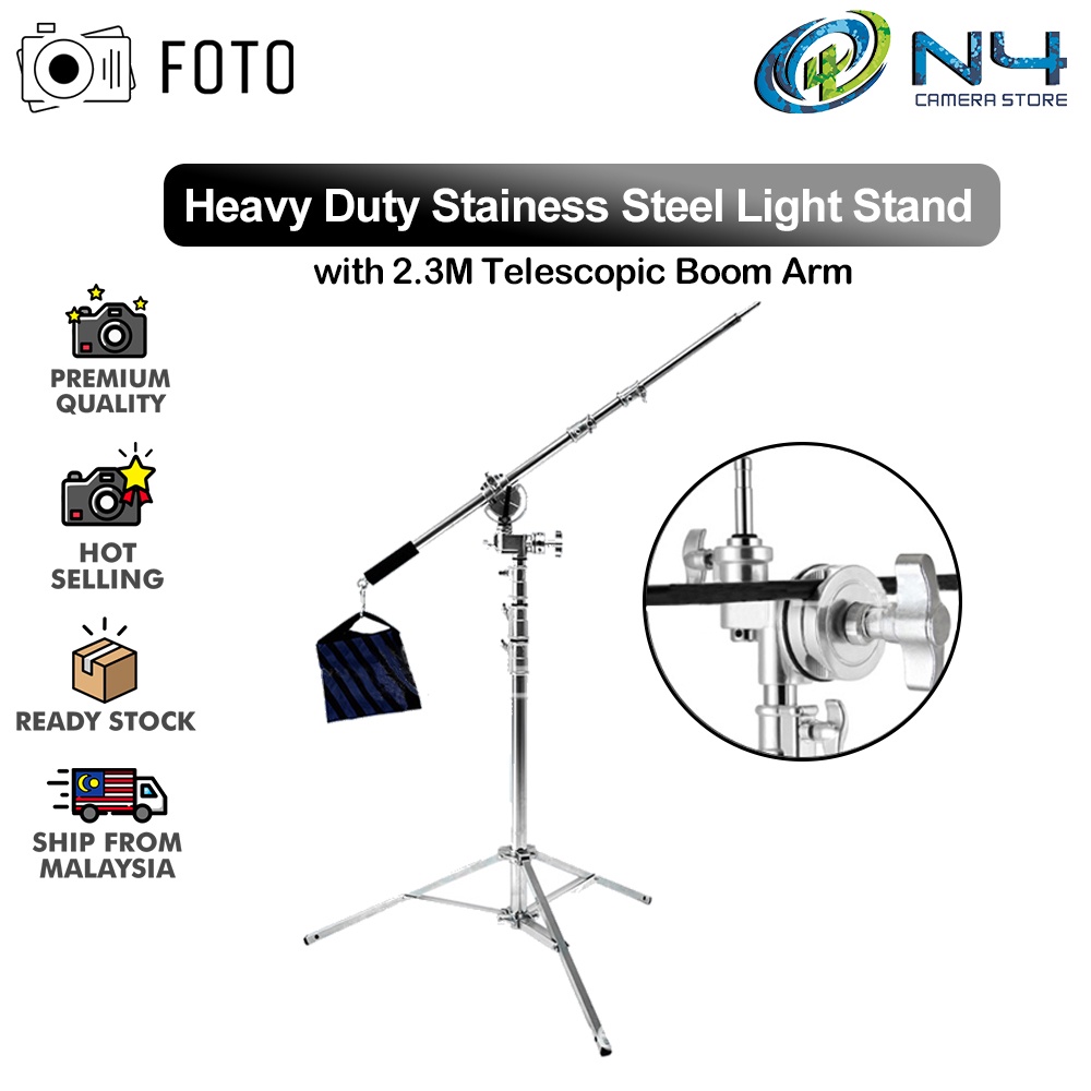 FOTO Heavy Duty Stainess Steel Light Stand / 3.7Meter / 4.5Meter / 6Meter Light Stand + Telescopic Boom Arm for Studio