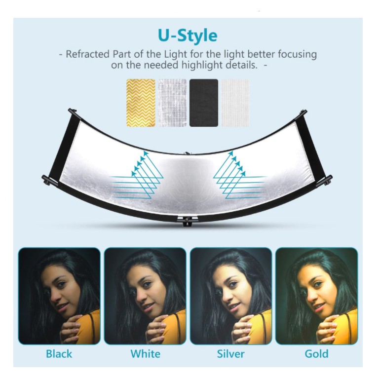 FOTO U-shaped Curved Reflector With Four Color Reflective Cloth For Studio Partial Photography