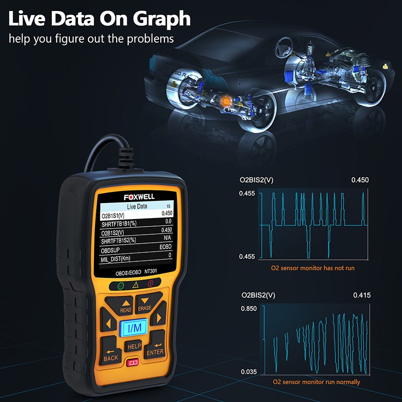 FOXWELL NT301 Enhanced Obd2 Scanner Car Scanner Car Diagnosis Odb2 Car Diagnostic Tool OBDII Car Diagnostic Scanner ECU Scanner Automotive Scanner Auto Scanner Check Engine Scanner Obd2 Gauge Obd Meter PK Launch Scanner Ancel Thinkcar Konnwei Scanner