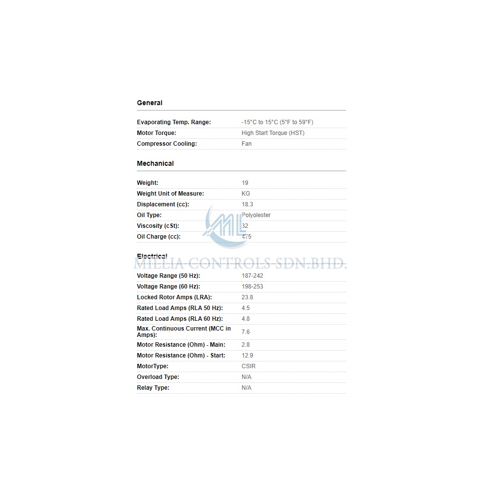 FRANCE TECUMSEH COMPRESSOR - CAJ4461Y / R134 / 1/2 HP / 50 Hz