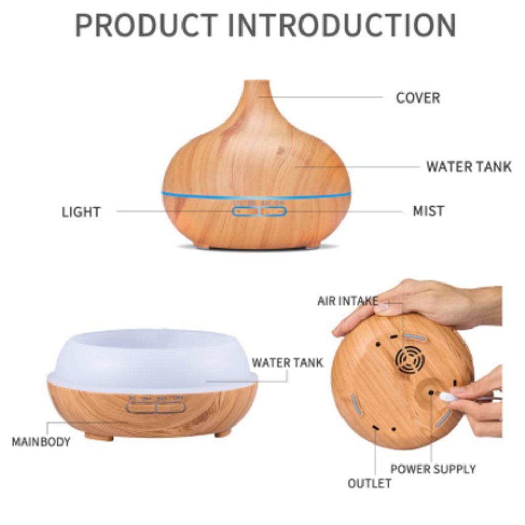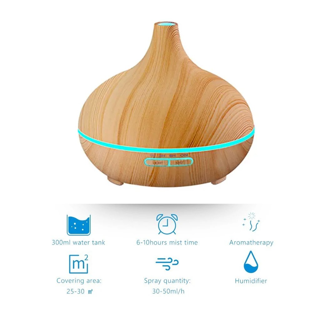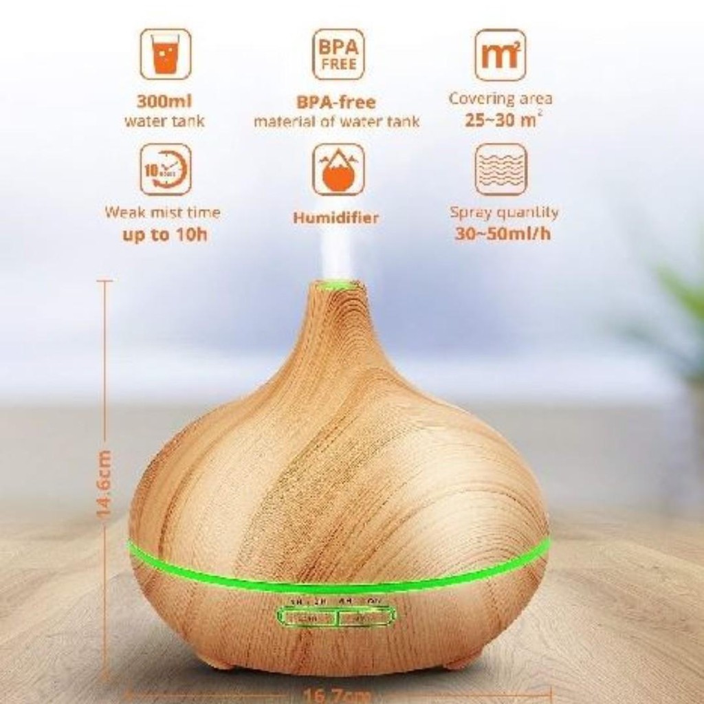 FREE OIL [REMOTE CONTROL]Ultrasonic Wood Grain Cool Mist Air Purifier/Humidifier/Diffuser Onion Design for Home&Office