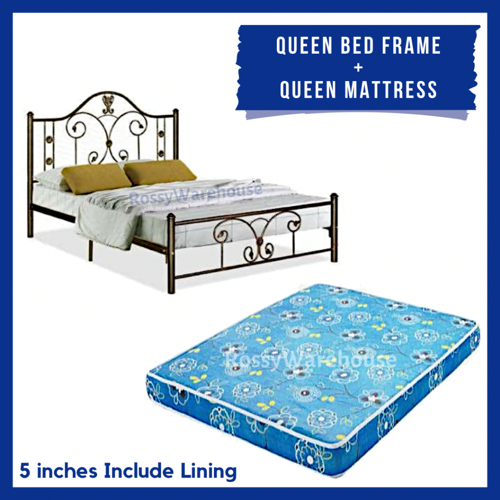 Slat Base Powder Coated Metal Queen Bed / Double Bed Frame Katil Queen Bed /Katil Double Katil Besi Murah