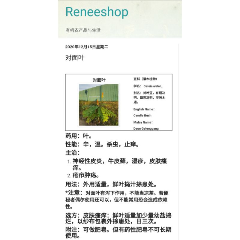 FRESH Candle Bush Leaves/ Daun Gelenggang SEGAR / 对面叶