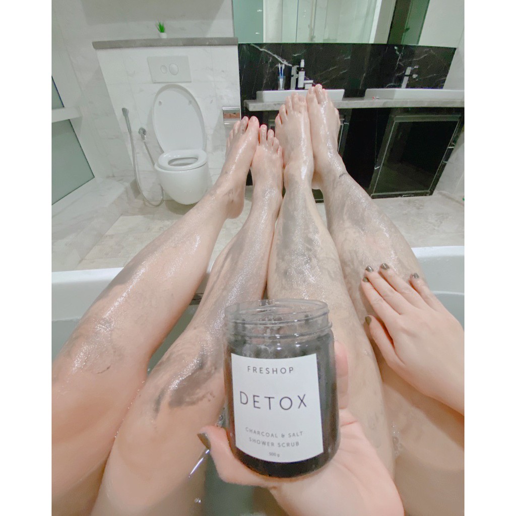 FRESHOP Detox Body Scrub . Buang Daki, Mencerahkan Kulit , Parut, Jerawat Badan, Bau Badan & Sunburn, Shower Scrub 700g