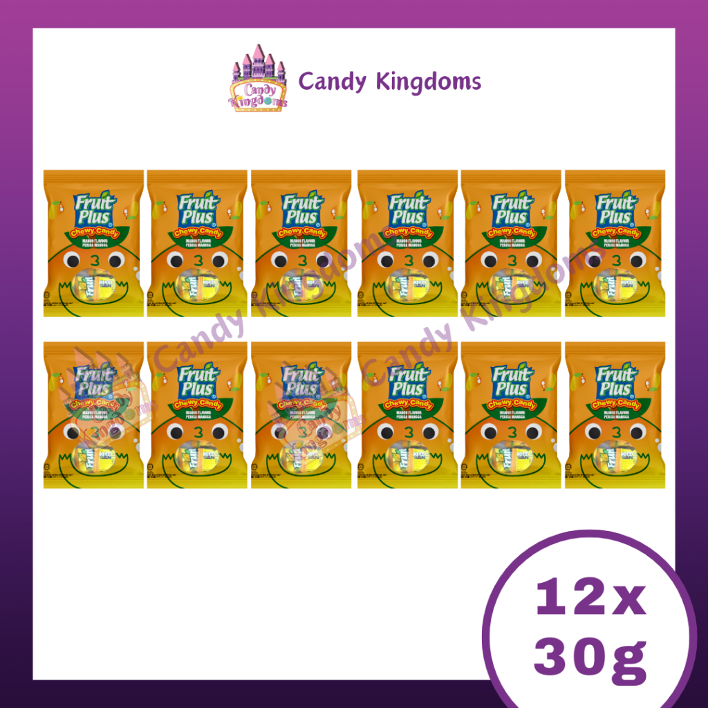FRUIT PLUS MANGO CHEWY CANDY 30G - 12 BAGS (HALAL) CANDYKINGDOMS