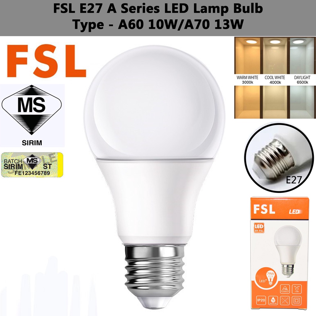 FSL Lampu Mentol LED SMD E27 A60 10W/A70 13W LED Lamp Bulb [SIRIM]