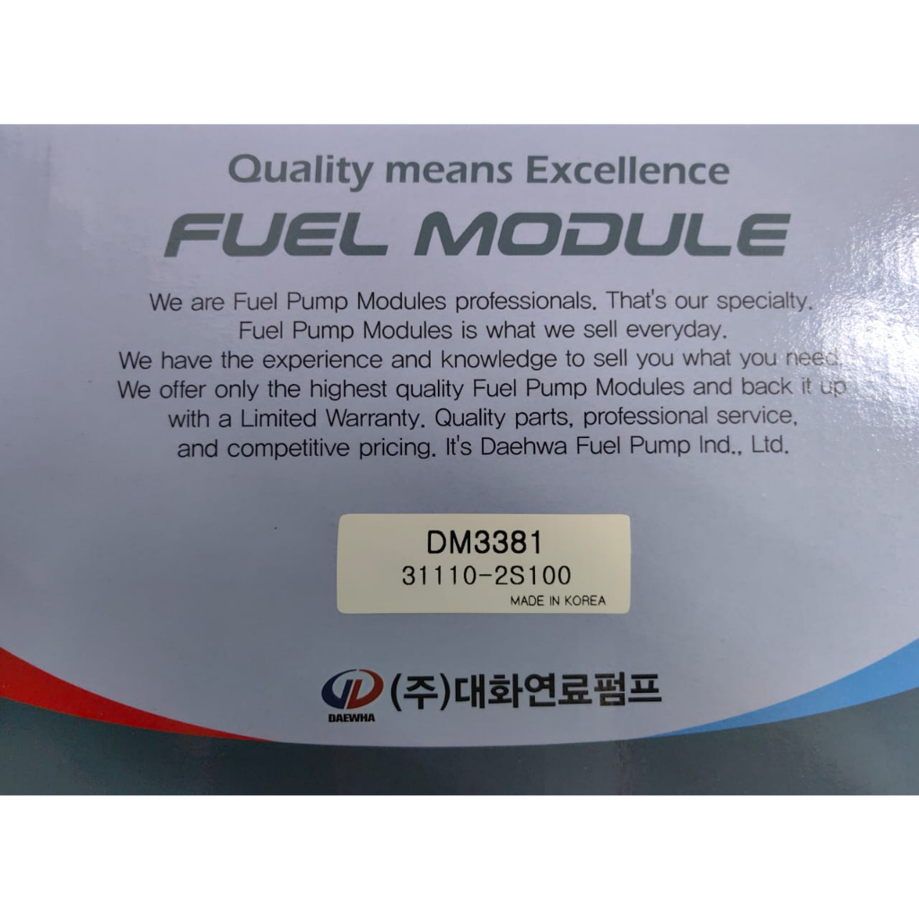 FUEL PUMP ASSY KOREA PARTS (DAEWHA) HYUNDAI TUCSON IX35 2.0 & 2.4 CC [31110-2S100]