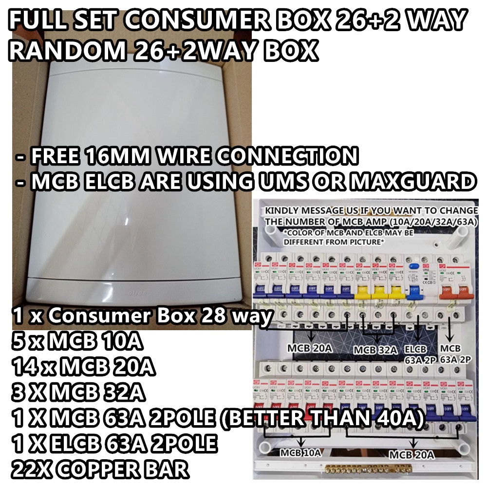 FULL SET CONSUMER BOX 30 WAY 2 ROW LECTRIC KOTAK SUIS MAIN ELECTRICAL BOX DB BOX MCB ELCB RCCB UMS MAXGUARD