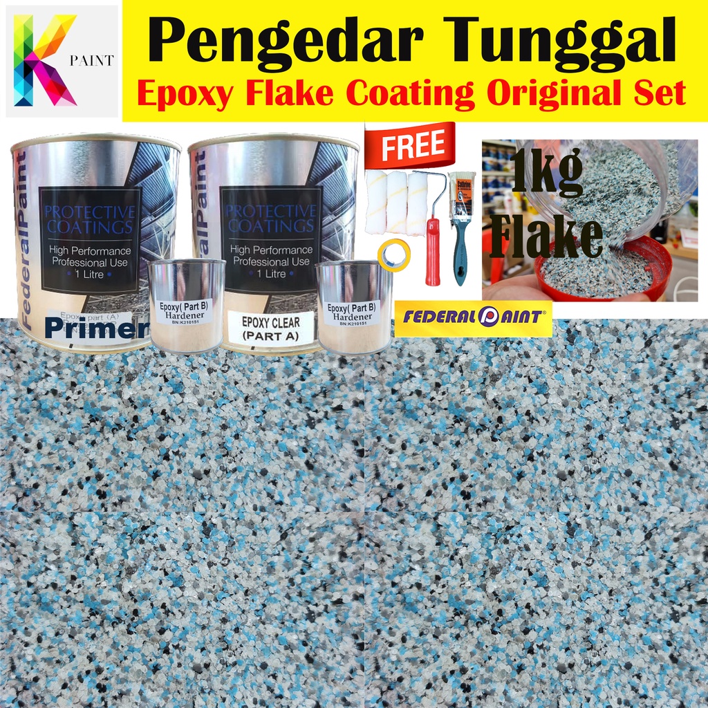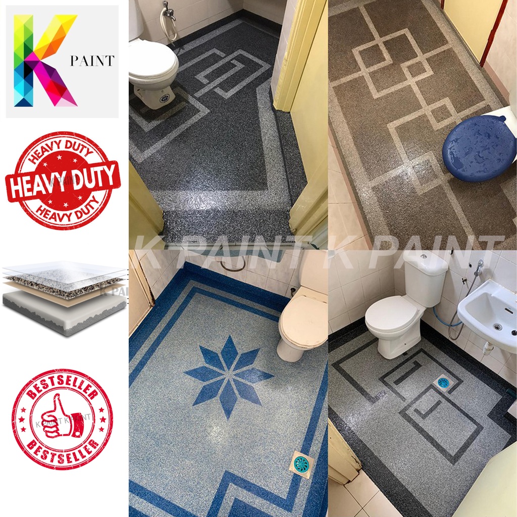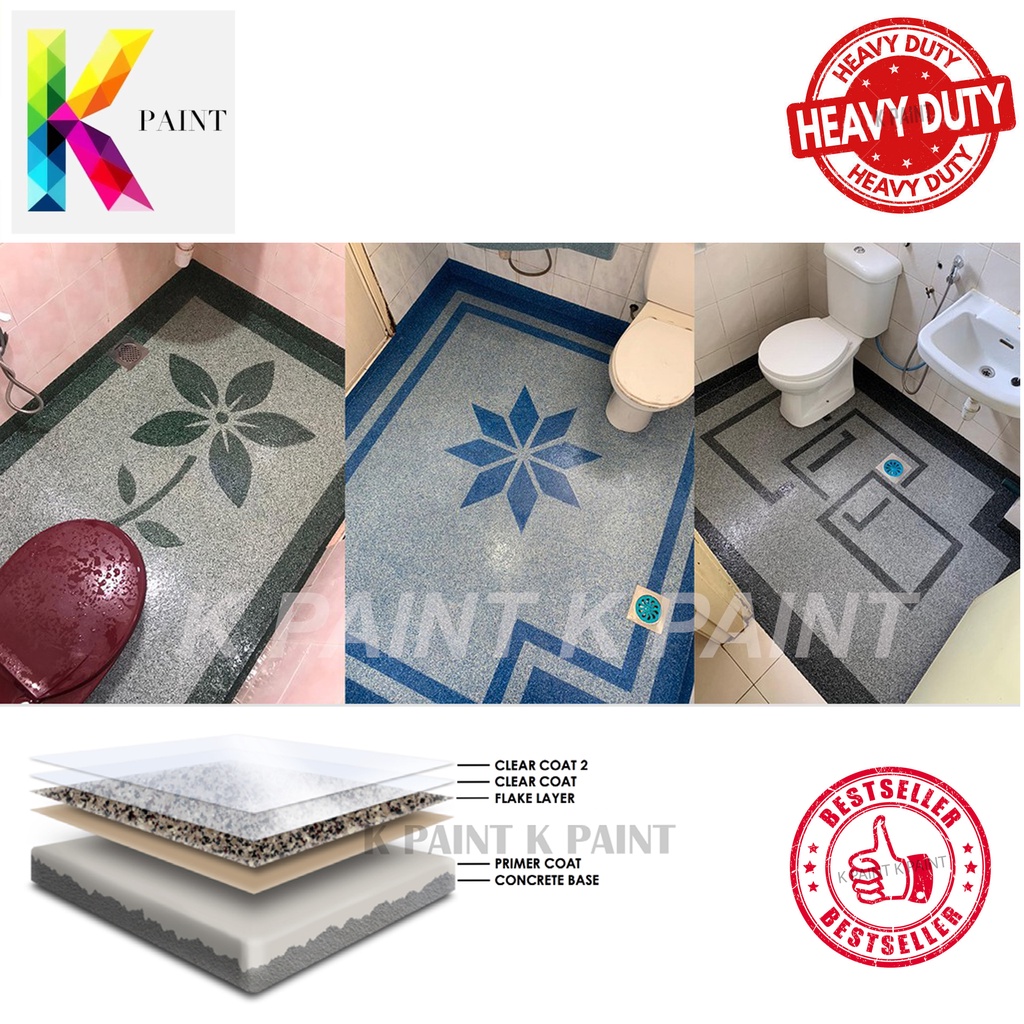 FULL SET Flake Coating Epoxy Toilet Tile Floor Waterproof ( FREE Tools / 1KG FLAKE /1L PRIMER /1L CLEAR )