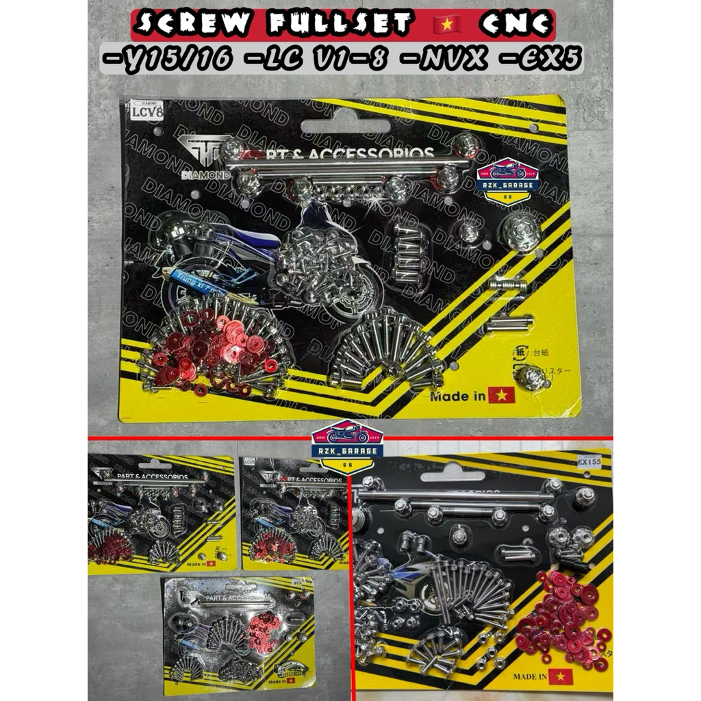 FULLSET CNC SCREW DIAMOND SET ORIGINAL VIETNAM SET SKRU Y15ZR Y16ZR LC135 V1 -V8 RS150 RSX150 EX5 Y125Z Y15 LC V8 SALAYA