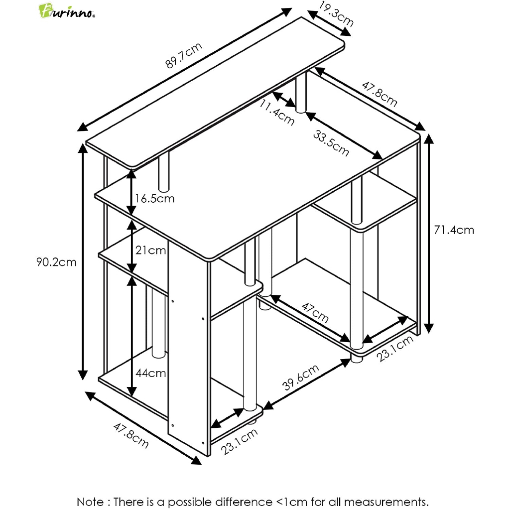 FURINNO 15071 JAYA Simple Design Computer Writing Desk / Computer Table with Both Sides Shelves