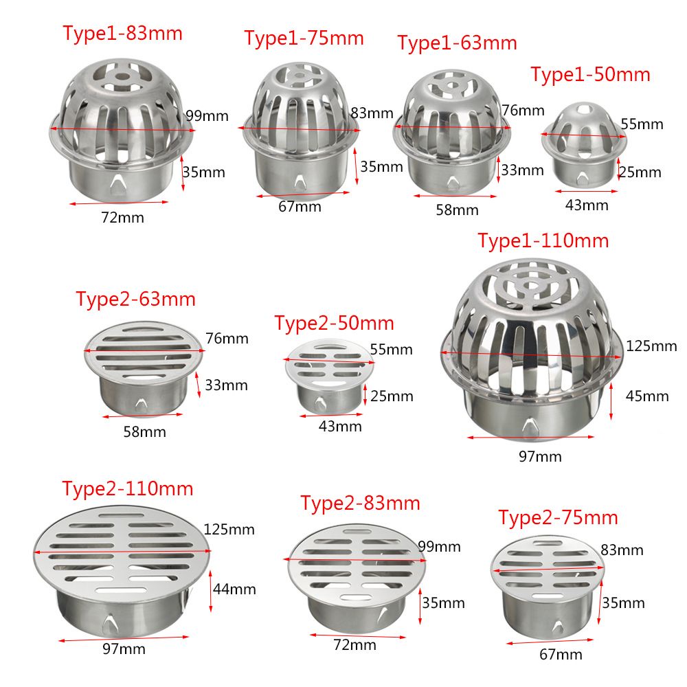 FUTURE Useful Roof Floor Drain Stainless Steel Rain Pipe Cap Balcony Drainage Cover Anti-blocking Round Outdoor Durable Drainage Plumbing Fitting