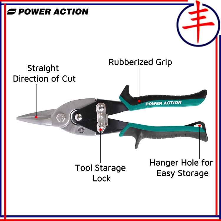 FY Power Action Tin Snip Straight Snipper Cutting Metal Sheet Scissor Shear Plier Cutter Gunting Besi