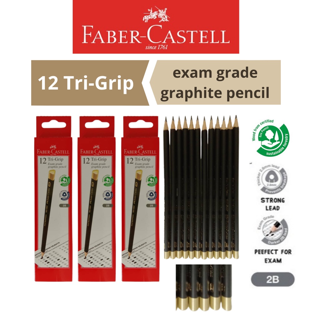 Faber-Castell 12 Tri-Grip Exam grade graphite pencil 2B Pencil 12pcs/box