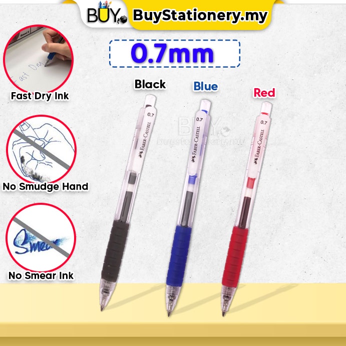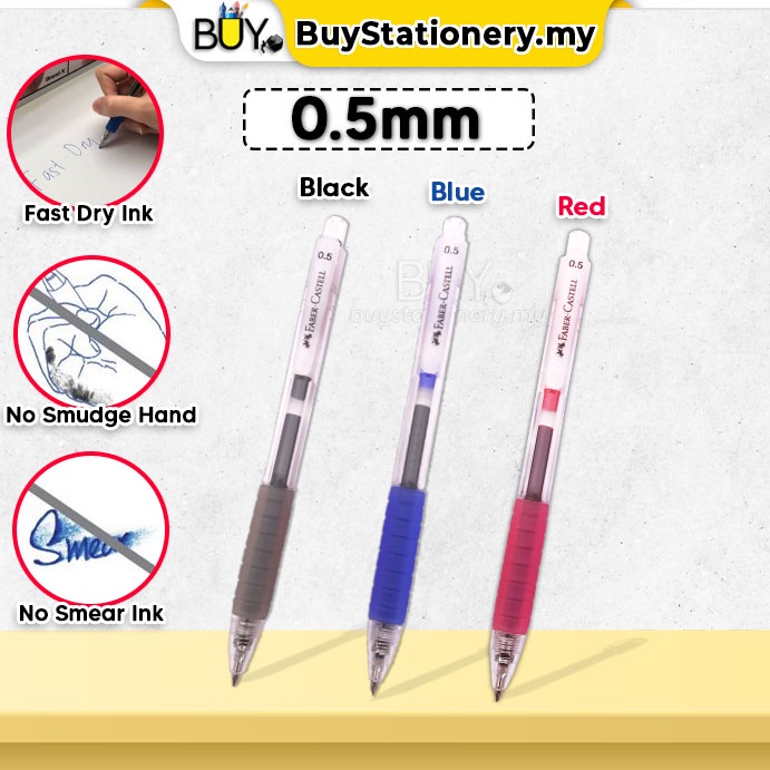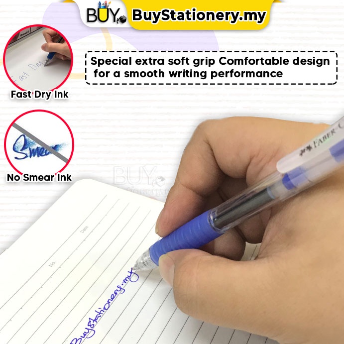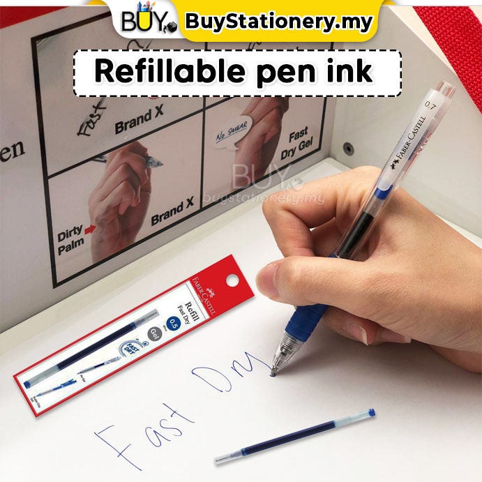 Faber Castell Pen Fast Gel Colour Fast Dry Ink 0.5 0.7 Black Blue Signature Pen -(1s/Pcs) Bullet Point Stationary Tulis