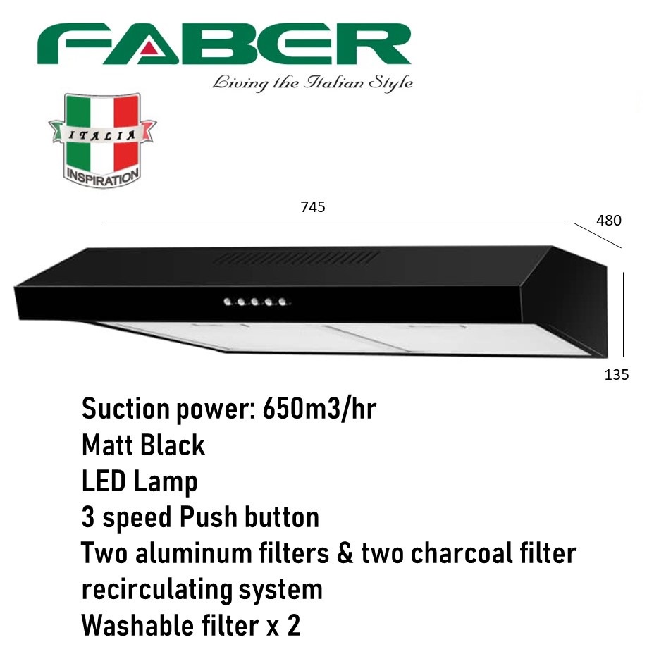 Faber FABERJET Slim Cooker Hood CLASSO 7633BK + Glass Hob PRESTO 2B/76BK