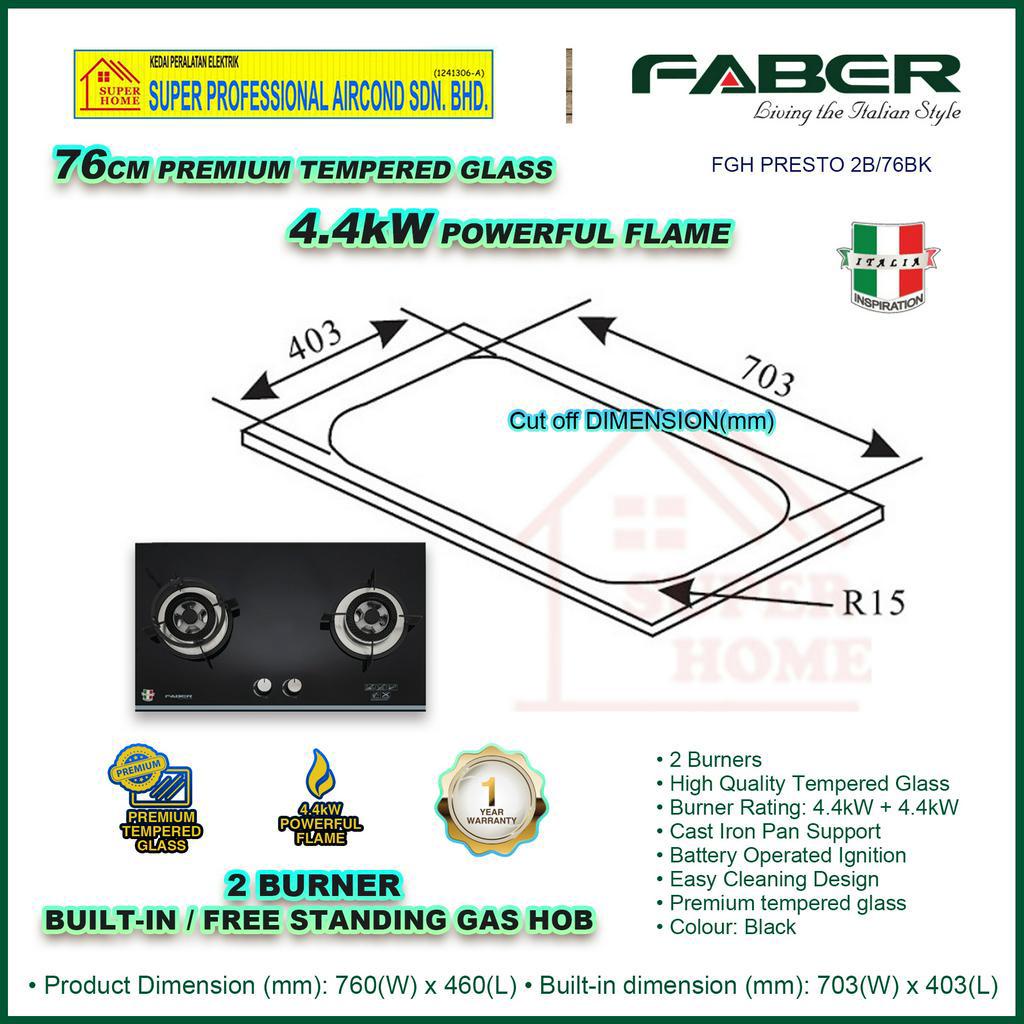 Faber Hood FABERJET CAPPA 90SS 90cm Curve Designer Cooker Hood / Faber Built-in Hob FGH PRESTO 2B/76BK (2 Burners) 76cm