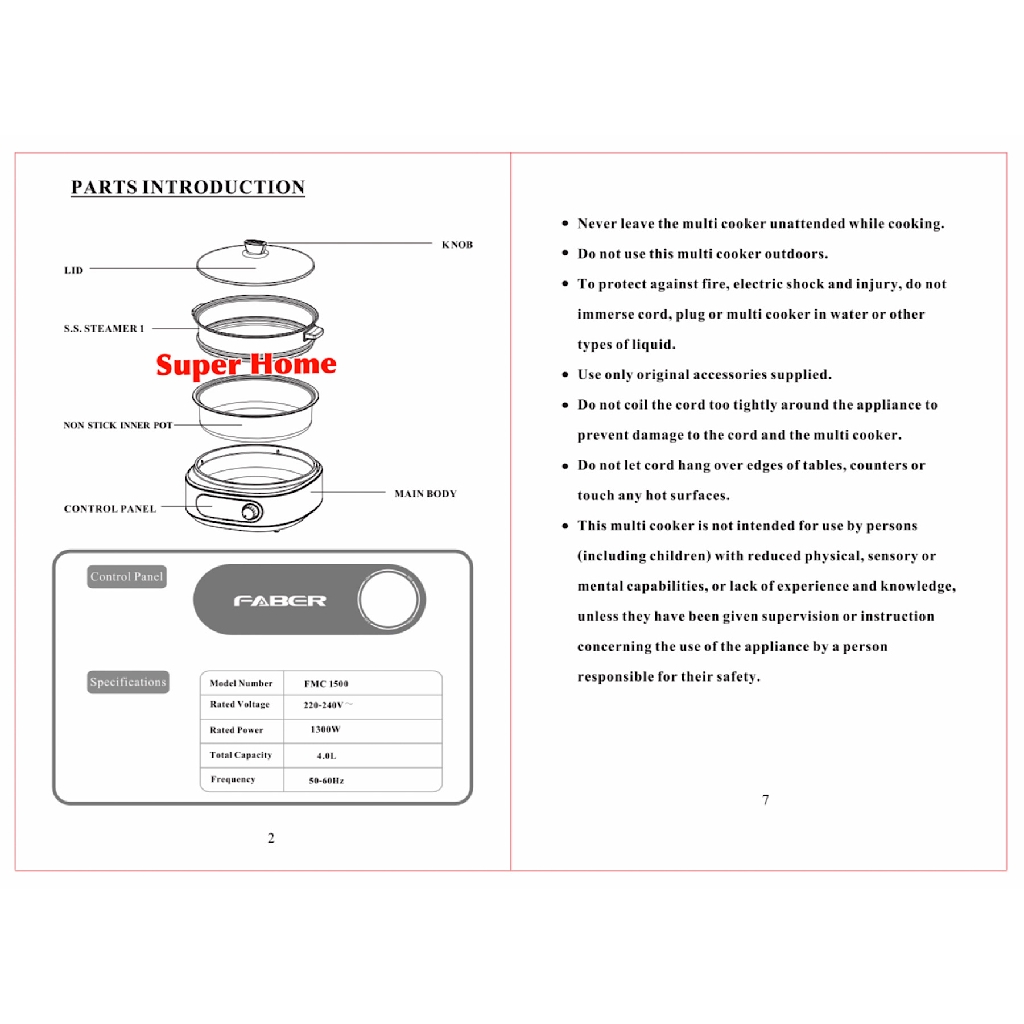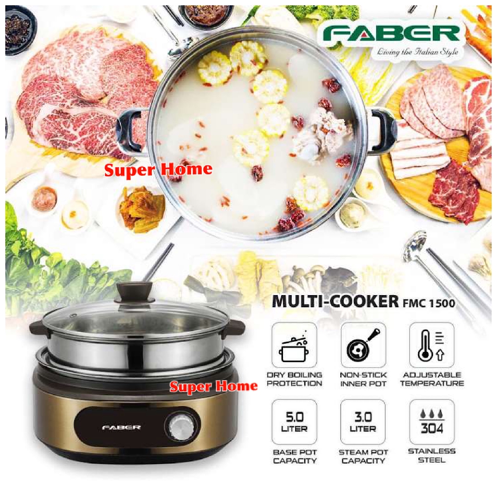 Faber Multi Cooker FMC-1500 Multi Cooker Steamboat with steam tray FMC 1500