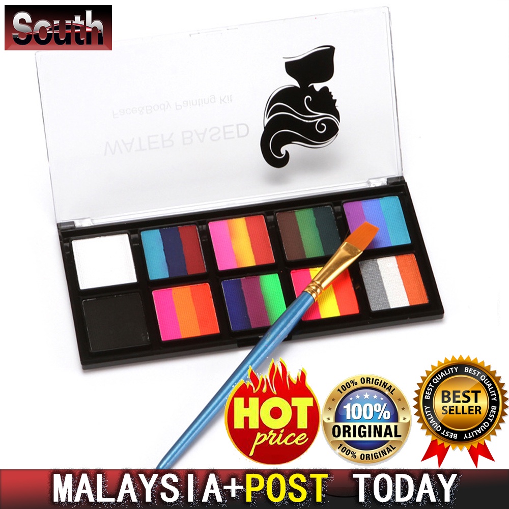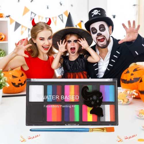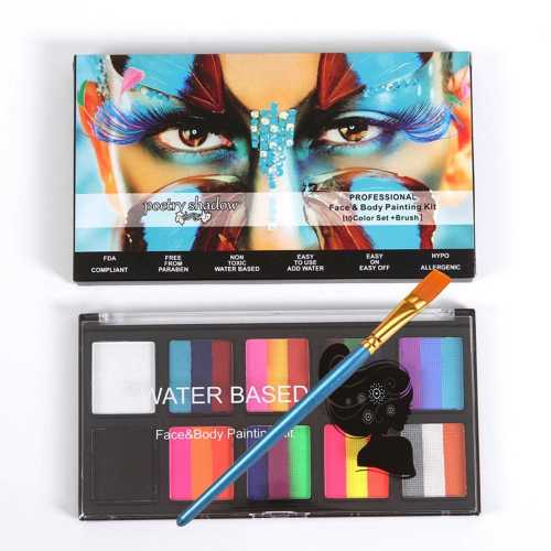 Face & Body Painting Kit 10 Colors Rainbow Water Activated Paints Split Cakes Palette Makeup
