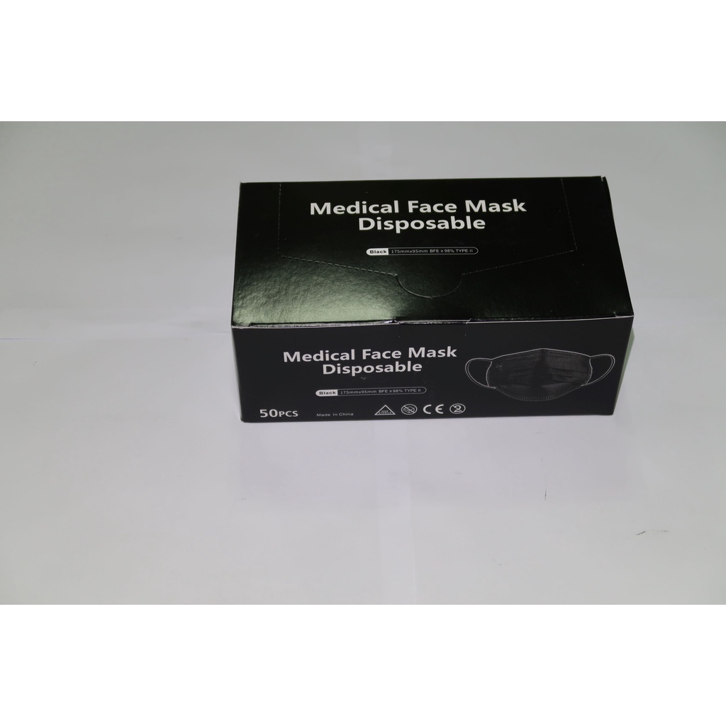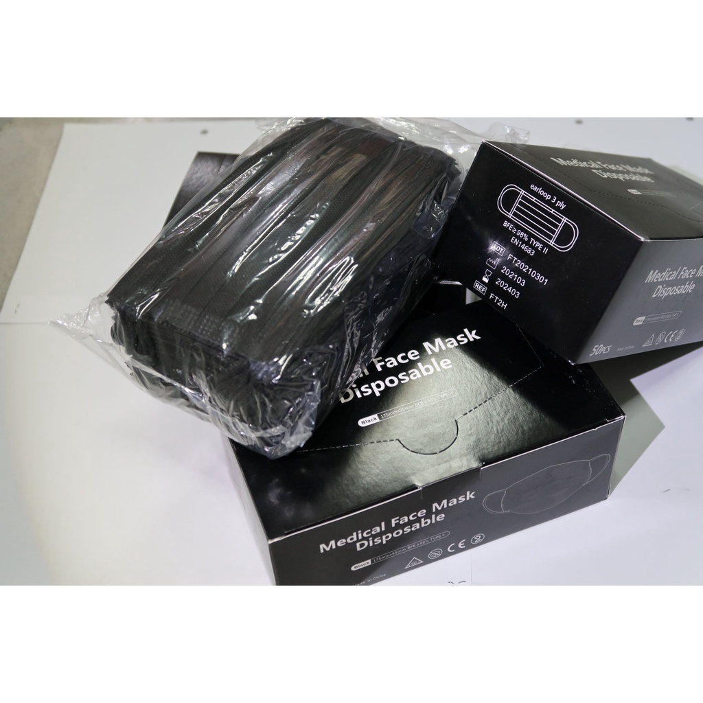 Face Mask Black Medical 3-Ply (Disposable) 50 PCS/Box Anti Allergy Face Mask Premium Soft Type II (CE) Face Mask Hitam
