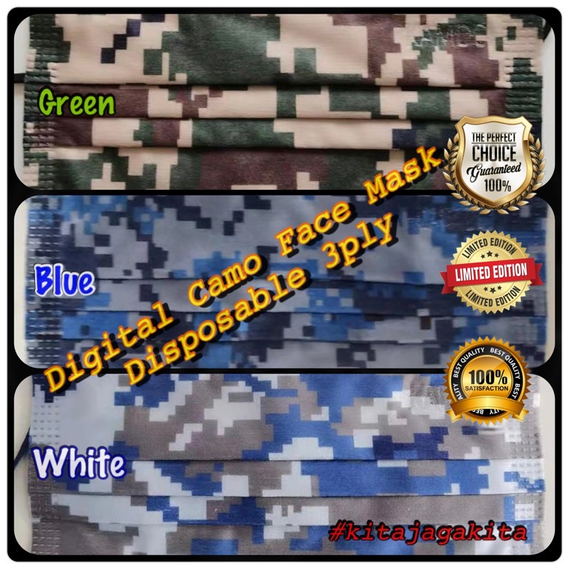 Face Mask Camo Digital 3 ply Tactical Disposable