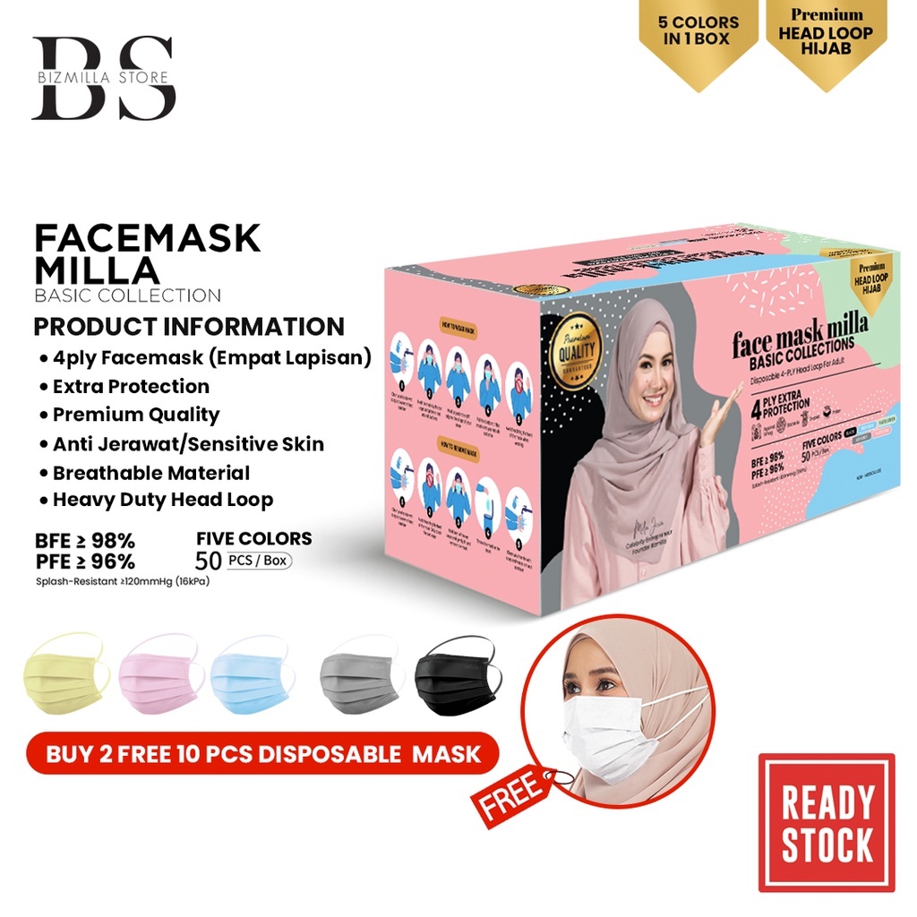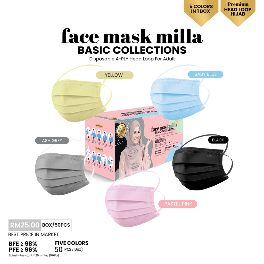 Face Mask Milla 4 Ply Head Loop (50 Pcs x 1 Box)