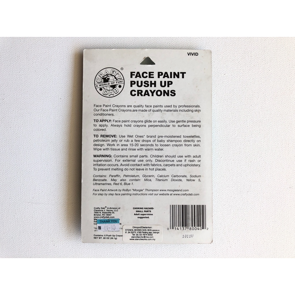 Face Paint Vivid Face Paint Push-Up Crayons 6/Pkg