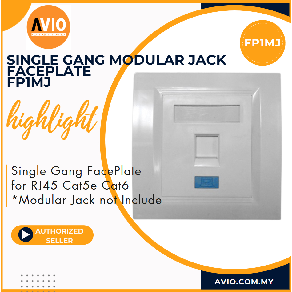 Faceplate Single 1 Gang for Cat5e Cat6 Cat3 Telephone and Internet Modular Jack Easy Install FP1MJ