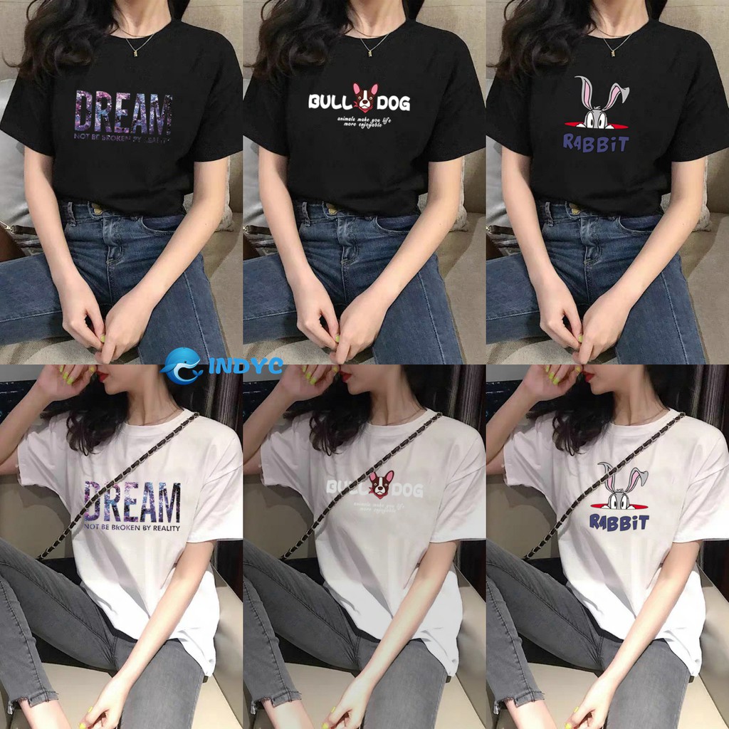 Factory Direct Original T-shirt Korea Short Sleeve Small Fresh Pattern Printing T-Shirts Ladies Fashion Clothes Basic Tee Couple Shirt