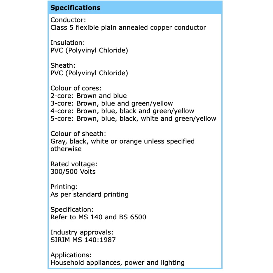 Fajar 4.0mm² (56/0.30) x 3 Core Flexible Cord Cables 100% Pure Copper (SIRIM) 4MM TIGA CORE