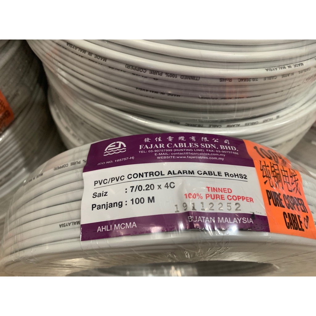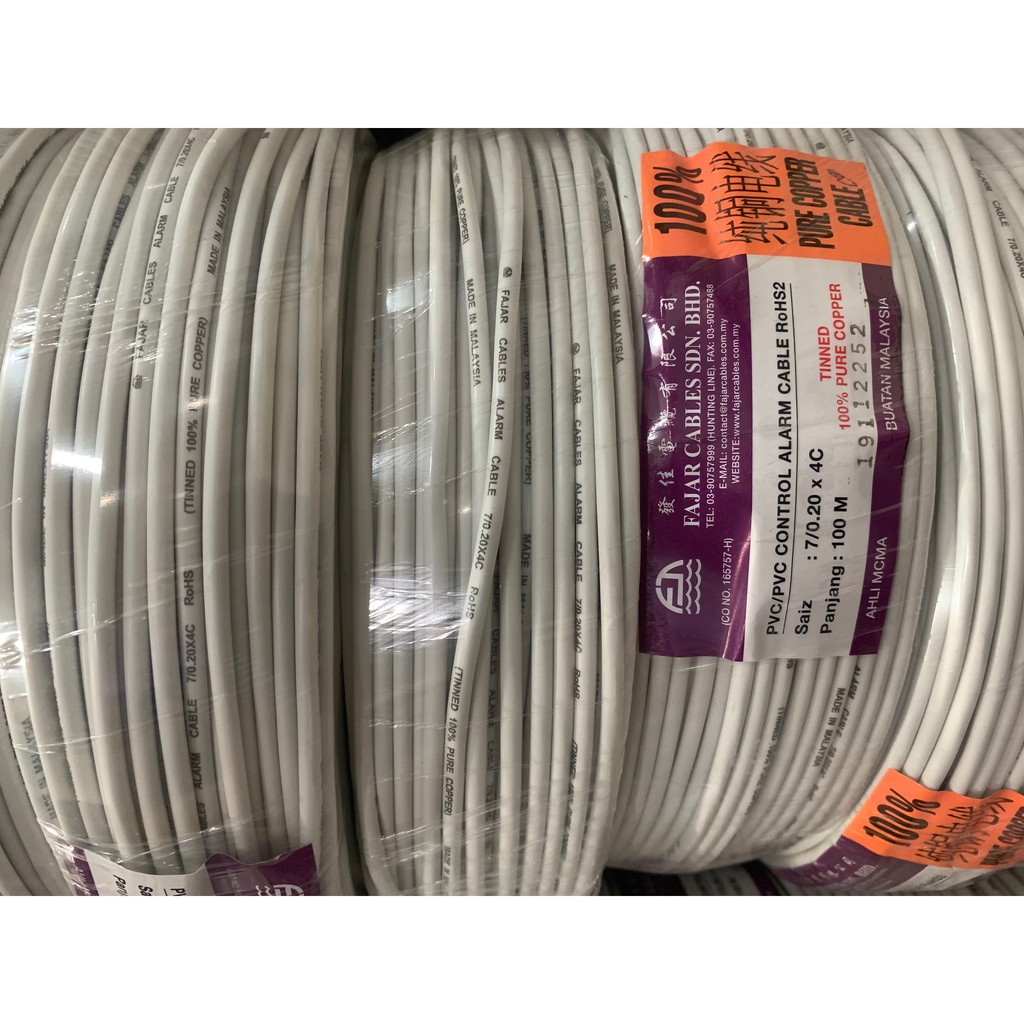 Fajar Tinned Bare Copper 7x0.20mm Alarm Cable, 100m