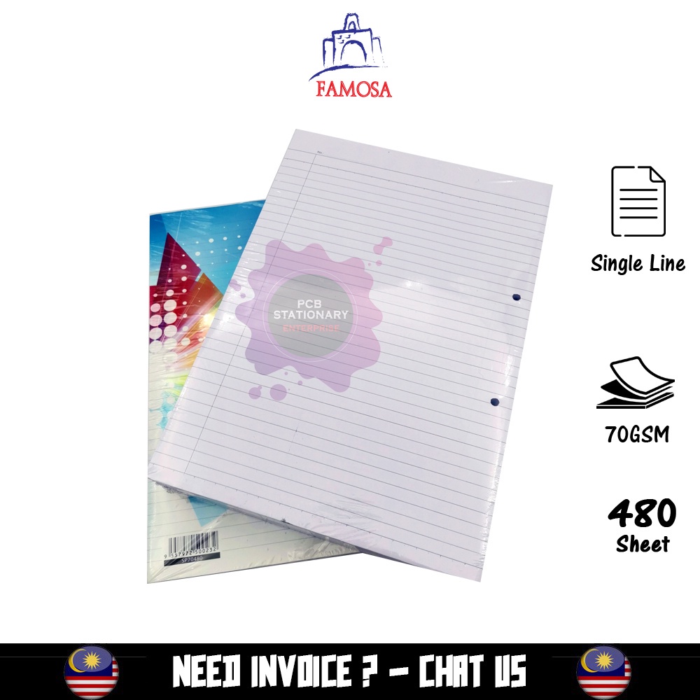 Famosa Ruled Single Line Foolscap Paper 480's - 70GSM /Kertas Kajang Exam Sheet Pack A4 Paper Kertas A4 Test Pad