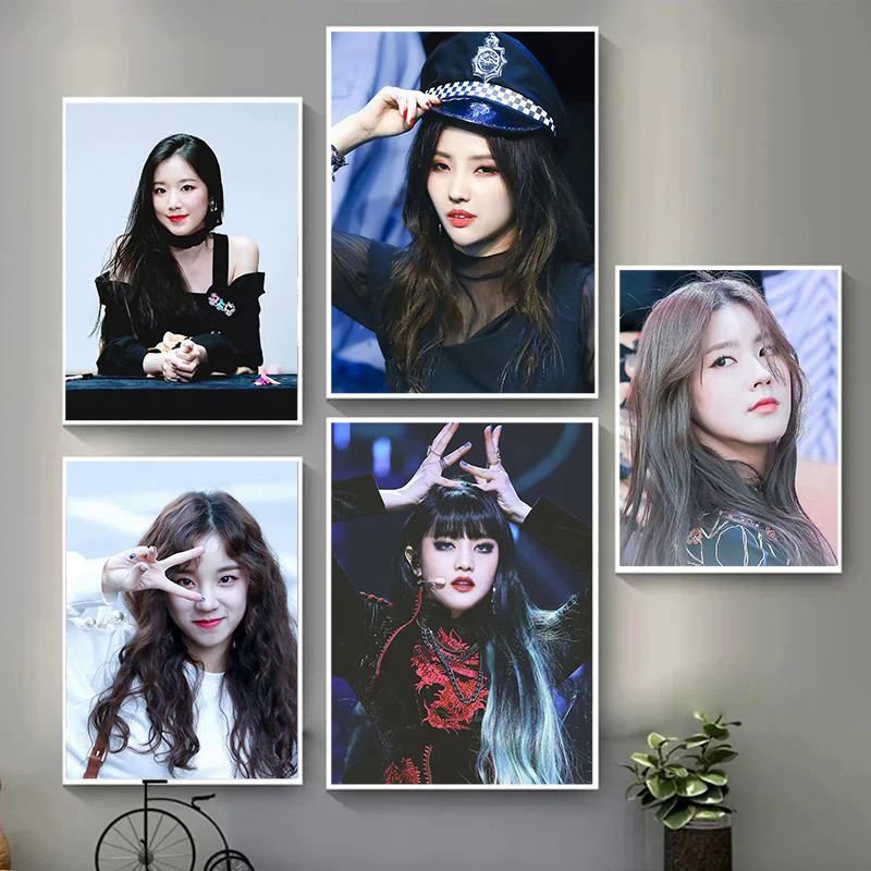 Famous Korean Kpop Girl Group Gidle Canvas Poster Girl Singer Music Star Fashion Portrait for Living Room Home Bar Cafe Decor