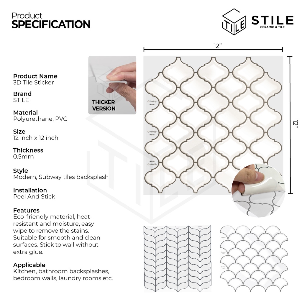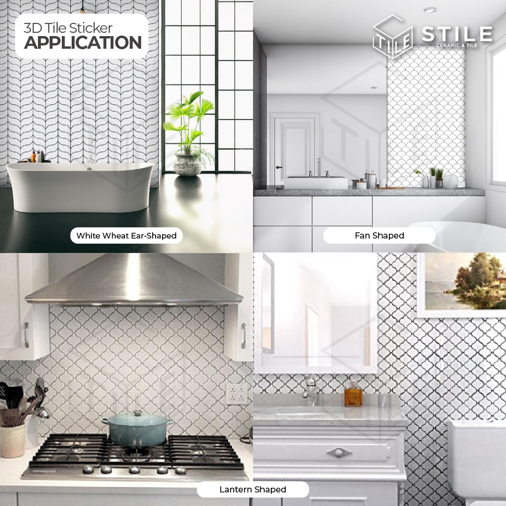 Fan Lantern Wheat 3D Tiles Sticker Lantern Kitchen Bathroom Wall Tiles Sticker Self Adhesive Backsplash Mosaic 12x12inch