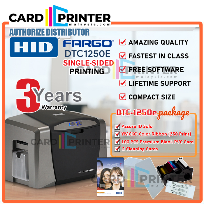 Fargo DTC1250e Single Side USB ID Card Printer Free Ribbon MCKO+ Cleaning Kit+PVC Card+Software