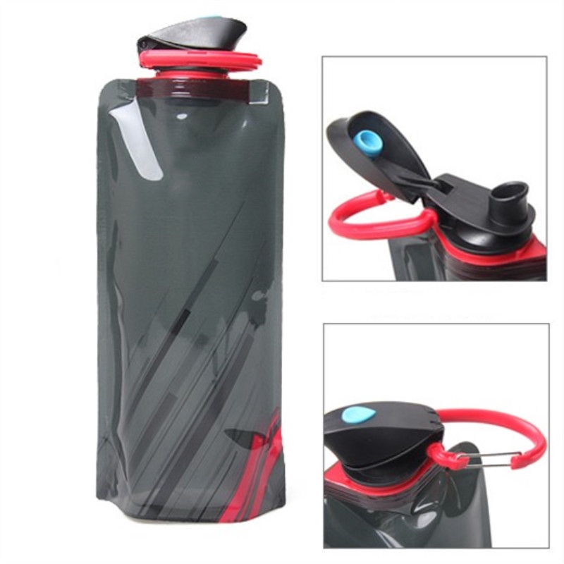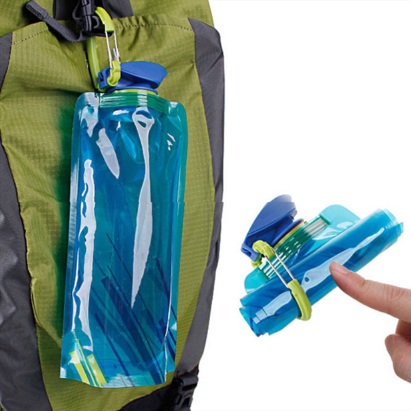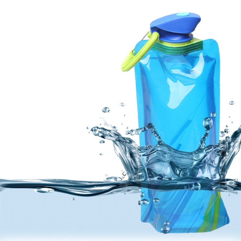 Fashion 700ml Reusable Foldable Flexible Water Bottle Bag Camping Hiking Tool Soft Flask Squeeze Drinking Water Pouch