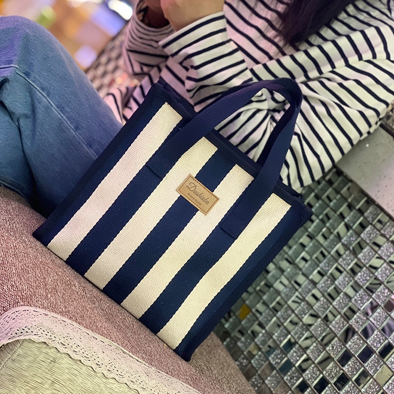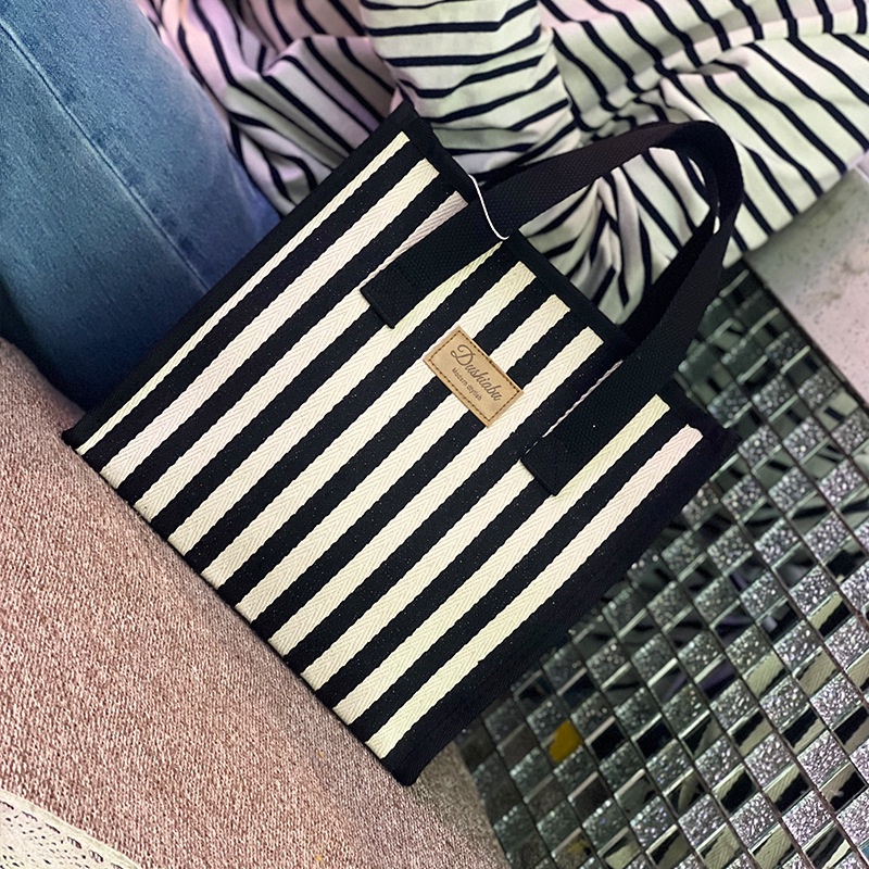 Fashion Korea Style Students Studying Canvas Bag Striped Waterproof Handbag Women's Tote Bag Gaya Korea Canvas Beg