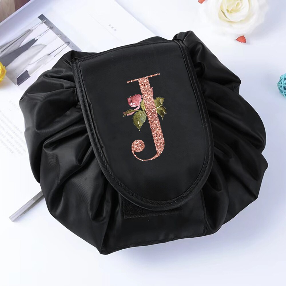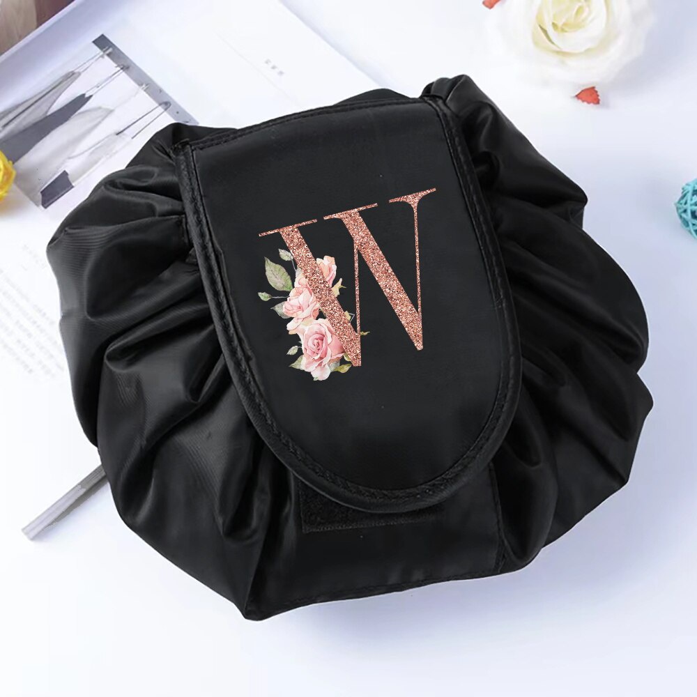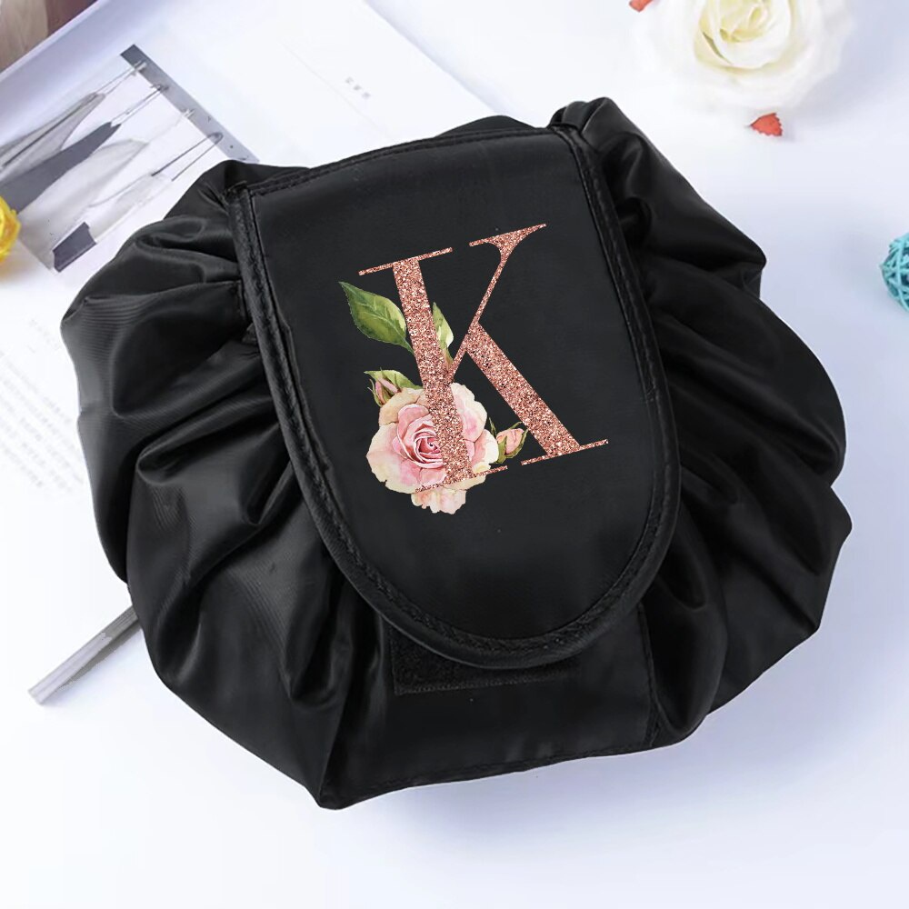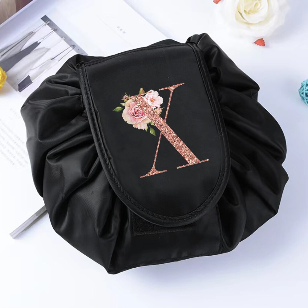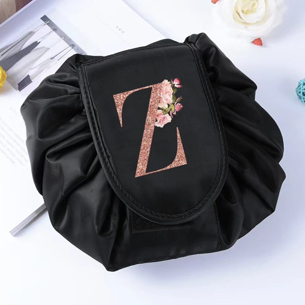 Fashion Rose Gold Letter Portable Lazy Storage Cosmetic Bag Drawstring Magic Makeup Pouch Large Capacity Travel Toiletry